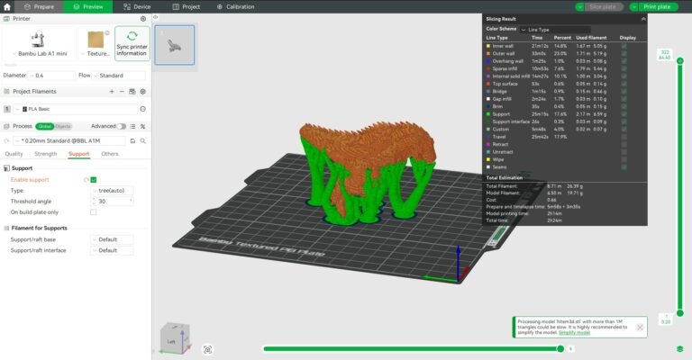 - Menentukan kelajuan print, suhu, infill, dan sokongan