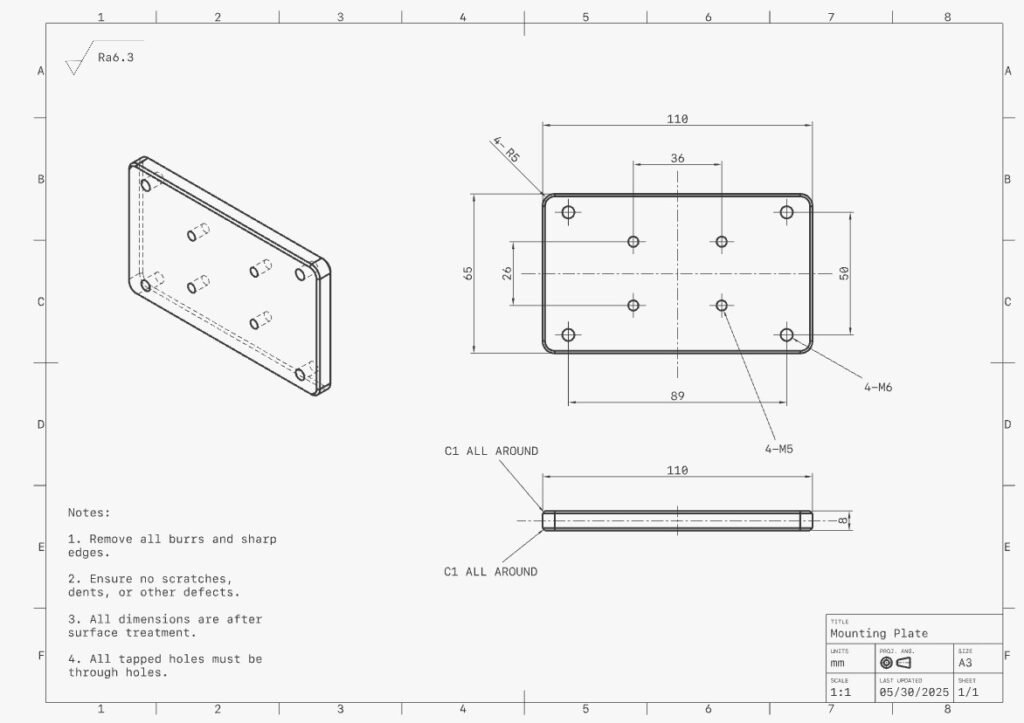 Shapr3D boleh hasilkan lukisan 2D daripada model 3D, tetapi sangat terhad. Tiada simbol G&T (Geometric & Tolerance) yang lengkap, hanya ukuran asas. Untuk projek yang perlukan ketepatan tinggi, ini jadi kekangan besar.