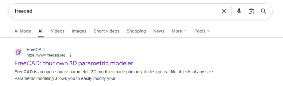 1. Cari “FreeCAD” di Google. Pilih laman web rasmi FreeCAD (biasanya hasil carian pertama).