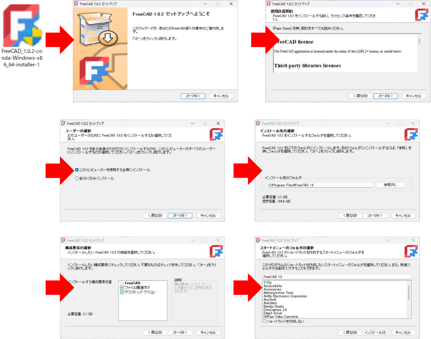 Proses muat turun dan pemasangan FreeCAD adalah ringkas dan mesra pengguna. Tiada keperluan untuk mencipta akaun atau mendaftar lesen. Pengguna boleh terus memuat turun, memasang, dan mula menggunakan perisian ini tanpa sebarang sekatan.